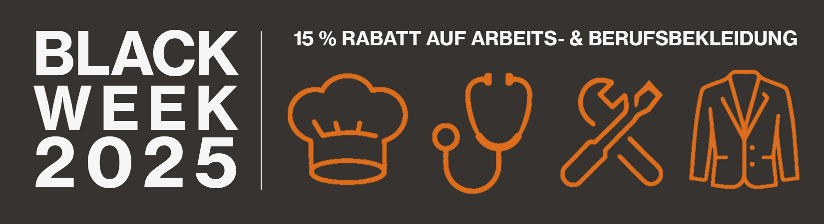 Die Black Week 2025 ist da – und bei COMO Fashion sichern Sie sich 15 % Rabatt auf das gesamte Sortiment. Perfekt, um hochwertige Arbeits- und Berufsbekleidung für Ihr Team rechtzeitig und budgetschonend einzukaufen.