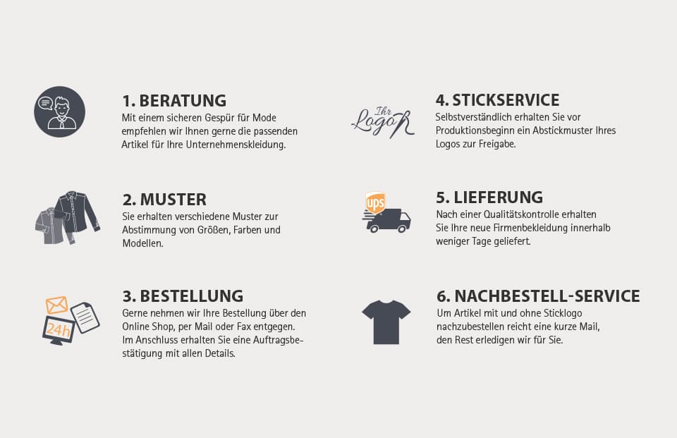 Bei COMO Fashion gestalten wir Ihnen den Bestellablauf so unkompliziert wie möglich: Von einer kompetenten Beratung, über eine zügige Bemusterung, bis hin zur schnellen Auslieferung Ihrer Berufsbekleidung können Sie sich hundertprozentig auf uns verlassen. Somit können Sie Ihr Team innerhalb kürzester Zeit perfekt einkleiden.