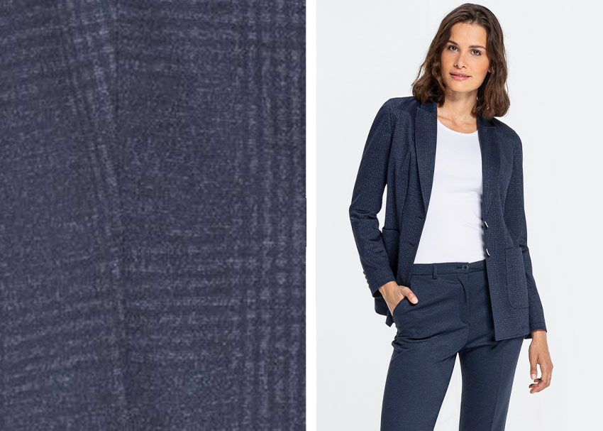 Extremely hip, extremely chic - the trouser suit with longblazer. Every woman radiates a modern look with this blazer. The soft, stretchy jersey makes this 2-button blazer a comfortable companion that always looks smart. Classic elements such as the peak lapels round off the look. The long blazer has 2 patch pockets, a breast welt pocket and side slits. The blended fabric is easy-care and comfortable to wear. The straight, slightly longer-cut women's blazer can be worn casually with jeans and a T-shirt. With a pair of business trousers, it becomes a casual ladies' suit! As a further highlight, the long blazer is available in a plain colour or with a simple glencheck pattern.
