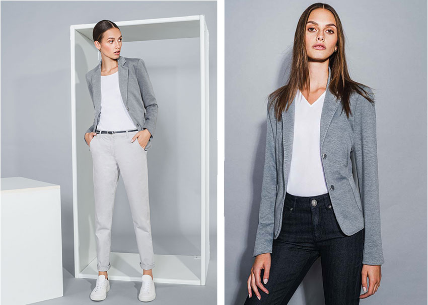 This women's blazer is suitable for trouser suits with a casual look. With its modern fit and dynamic look, it gives you a professional look. Made from a pleasant blended fabric, it is extremely comfortable to wear. The blazer has two closing buttons and a notch lapel that adds a modern touch to any business outfit. The three pockets give you plenty of storage space for your essentials. Available in three colours, there is something for every taste. This women's blazer can be combined in a variety of ways and looks casual and sporty with casual business jeans and a V-shirt, for example. This women's business outfit is particularly suitable for spring and summer.