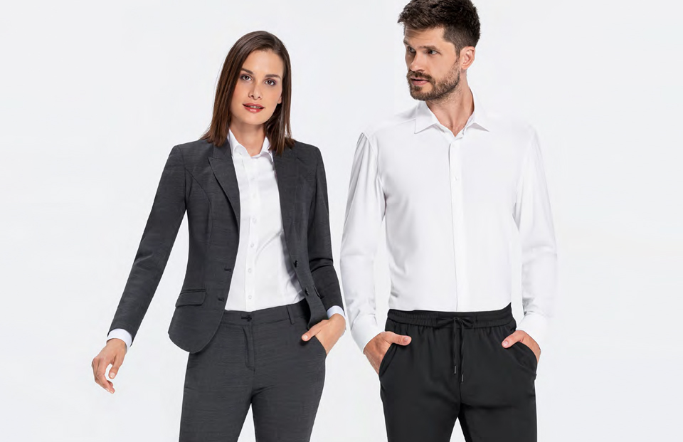 Furthermore, today's corporate fashion must withstand the highest demands. Design, workmanship, wearing comfort, functionality and washing behaviour and, above all, the durability of the textiles must stand up to the high demands of daily wear. In order to meet all these requirements, the fabric qualities are of primary importance: Materials used in corporate wear must have different properties than the fabrics used in the rest of the fashion industry: the materials must be stronger, the tear resistance must be higher, the stretch yarns should have an optimal recovery value and not wear out - just a few of countless other criteria.